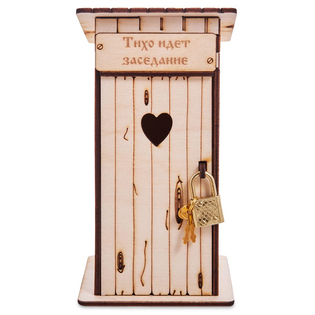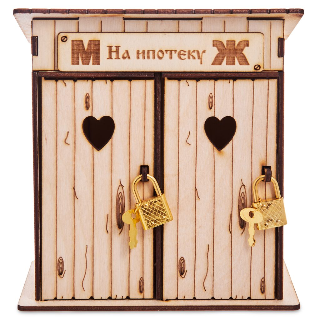 Прикольная деревянная копилка”Туалет 2 кабинки”На ипотеку”(Бежевый)Размер:16*8*18см.