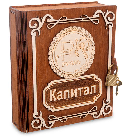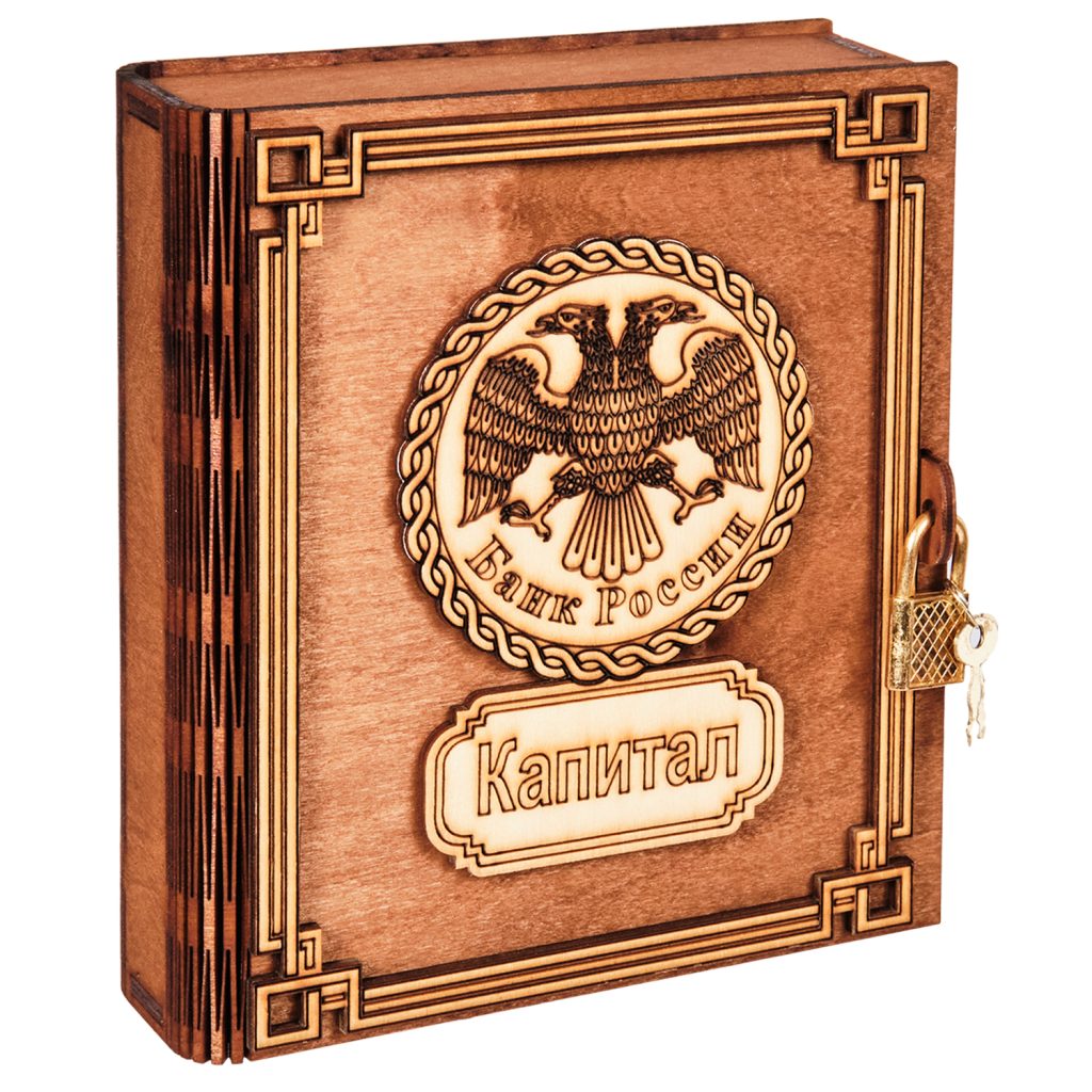 Деревянная копилка “Книжка Капитал с рублем”Размер:13.5*5.5*15.5см.
