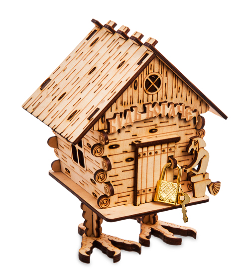 Деревянная копилка”Домик Бабы-Яги” Размер:10*10.5*17см.