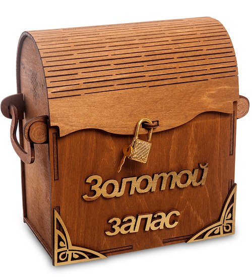 Деревянная копилка”Золотой запас”Размер:16.5*10*18см.