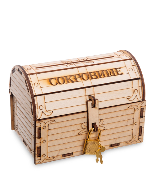 Деревянная копилка”Сундучок Сокровище маленькая”Размер:13.5*9*10см.