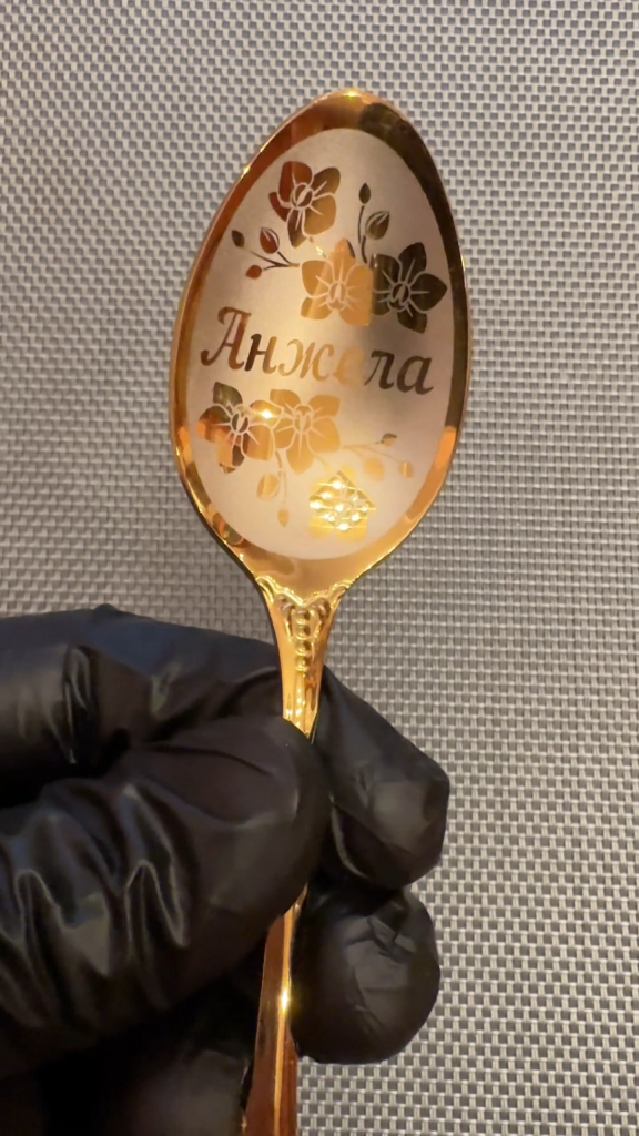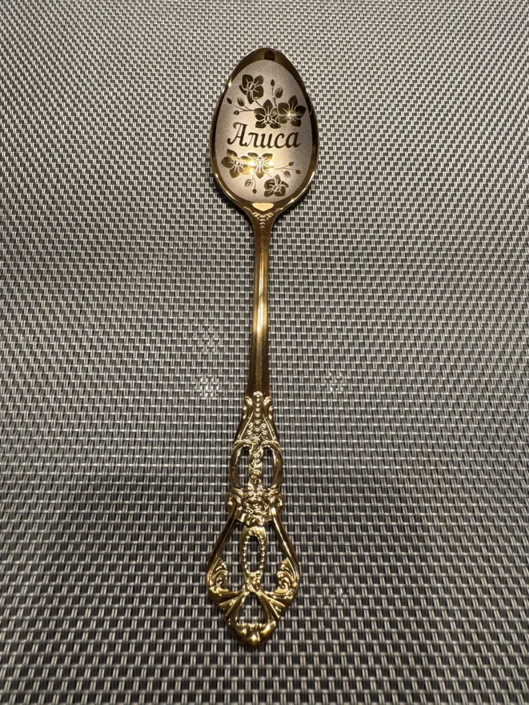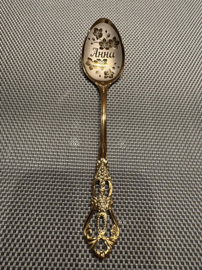 Сувенирная ложка “АНАТОЛИЙ” Нитрид-титановое покрытие. При использовании не меняет цвет.17см.