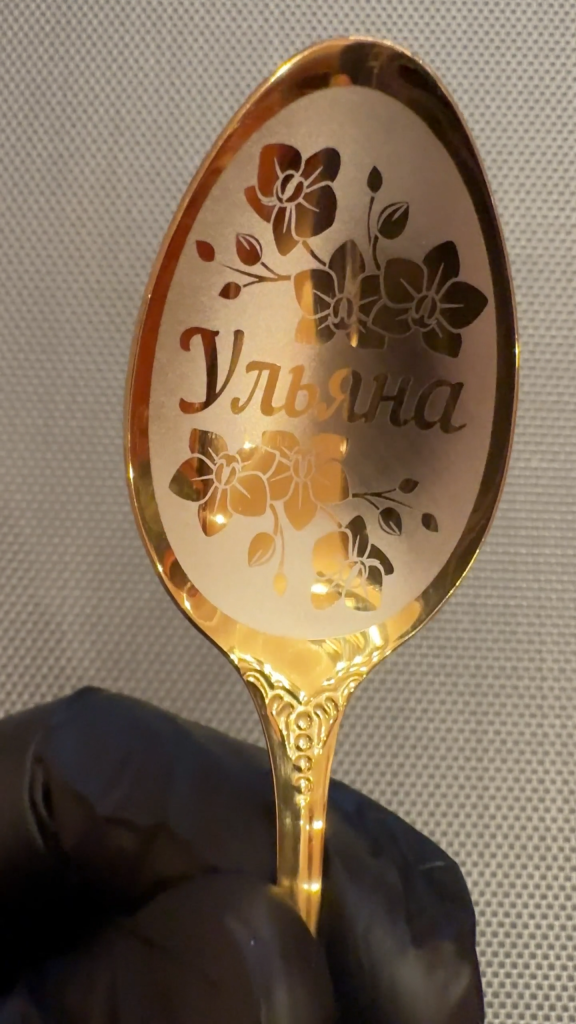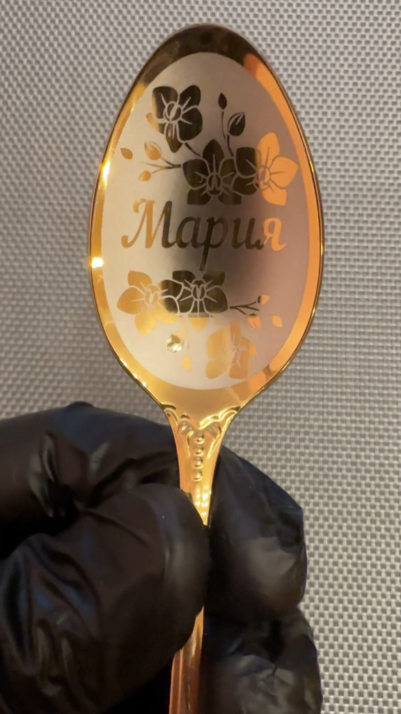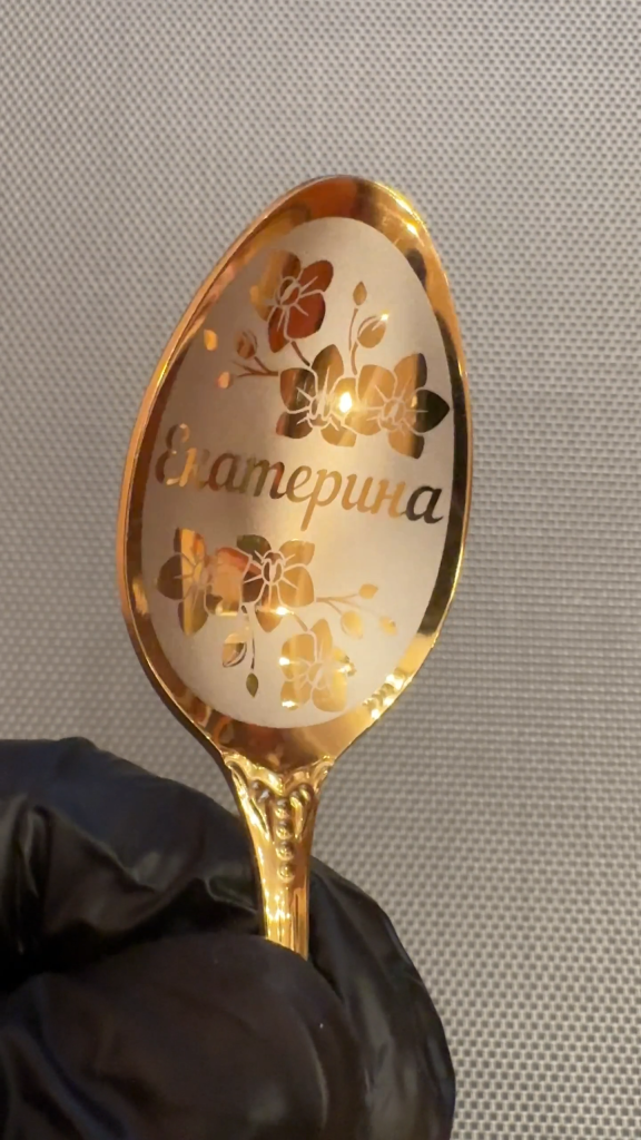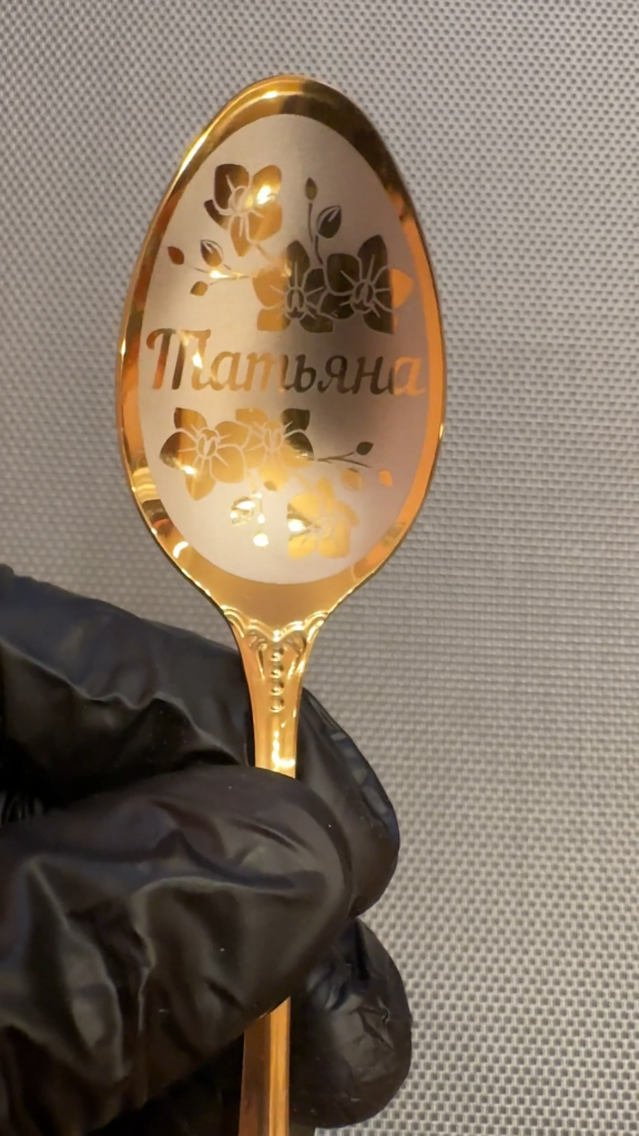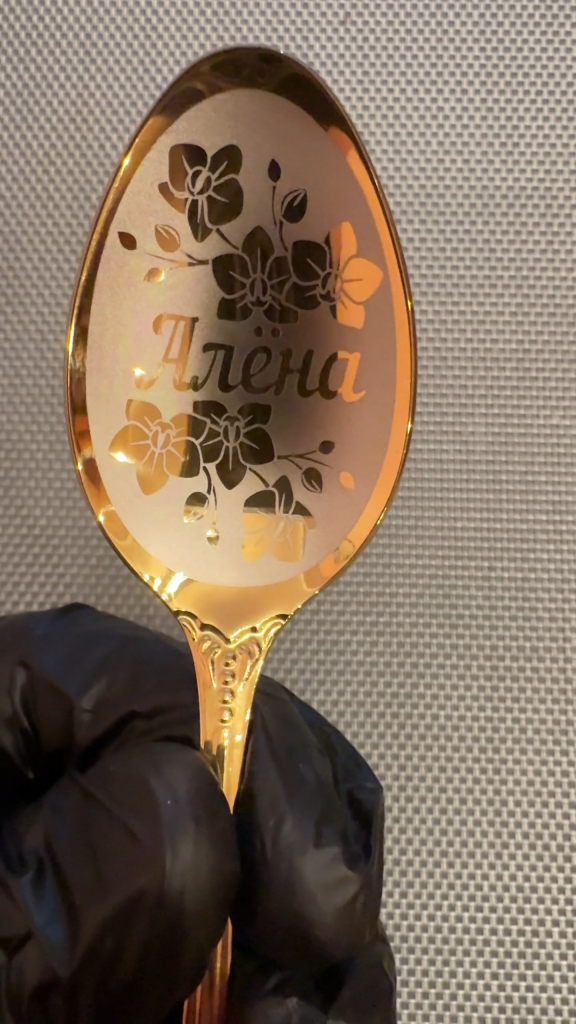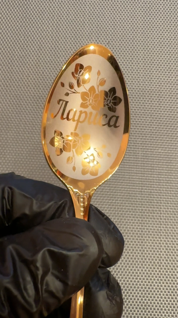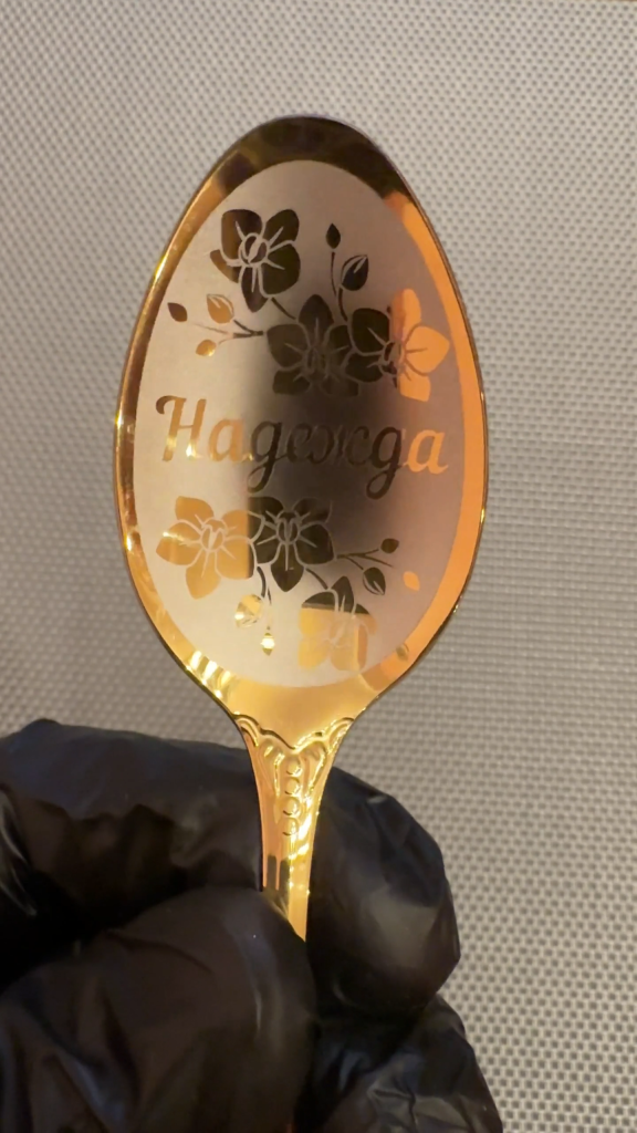 Сувенирная ложка “БОРИС” Нитрид-титановое покрытие.При использовании не меняет цвет.17см.