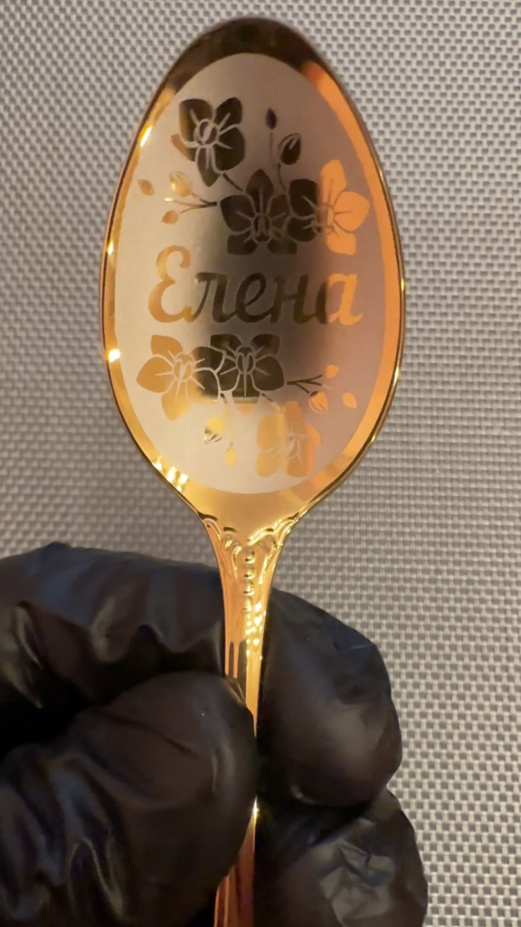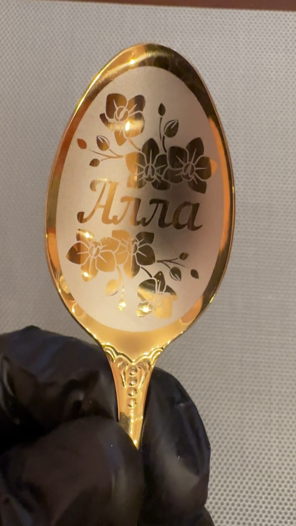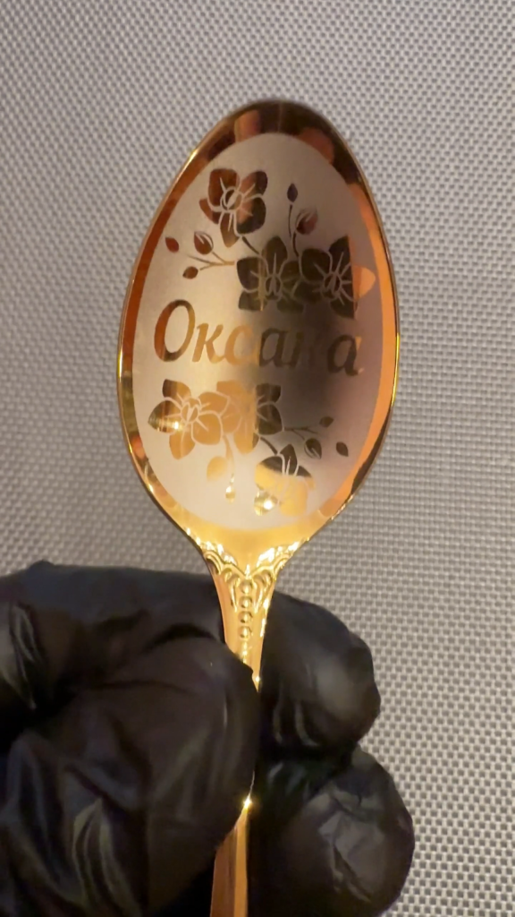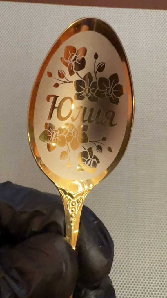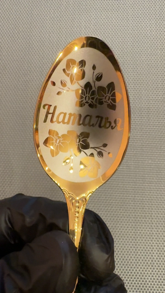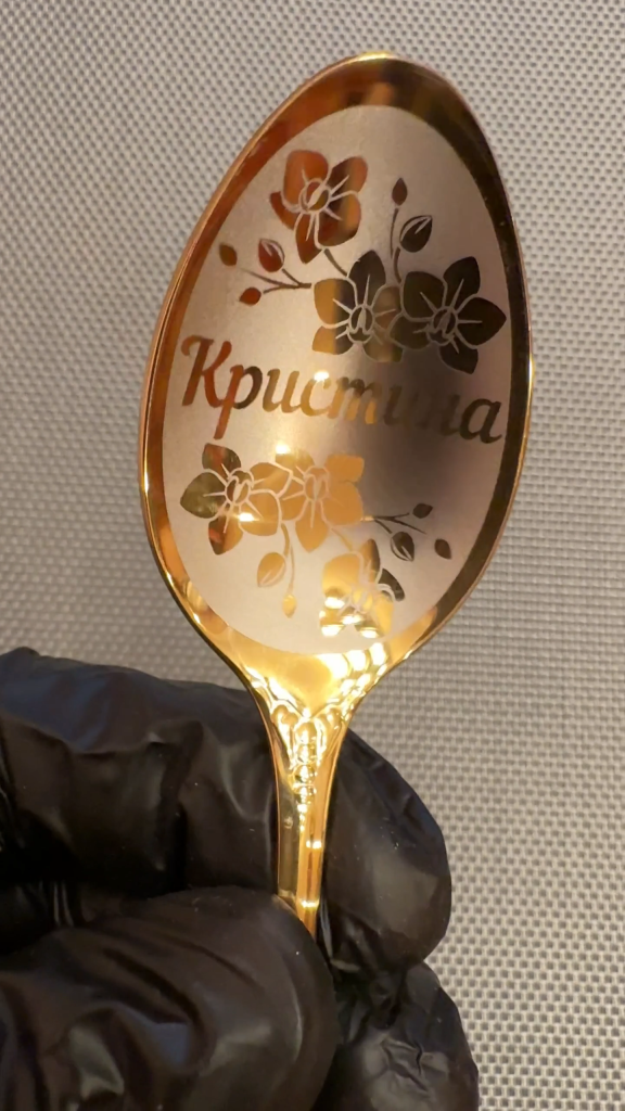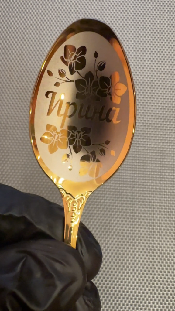 Сувенирная ложка “БОРИС” Нитрид-титановое покрытие.При использовании не меняет цвет.17см.