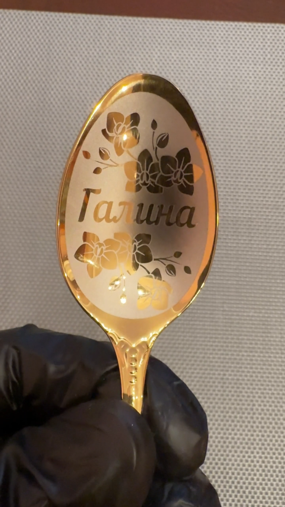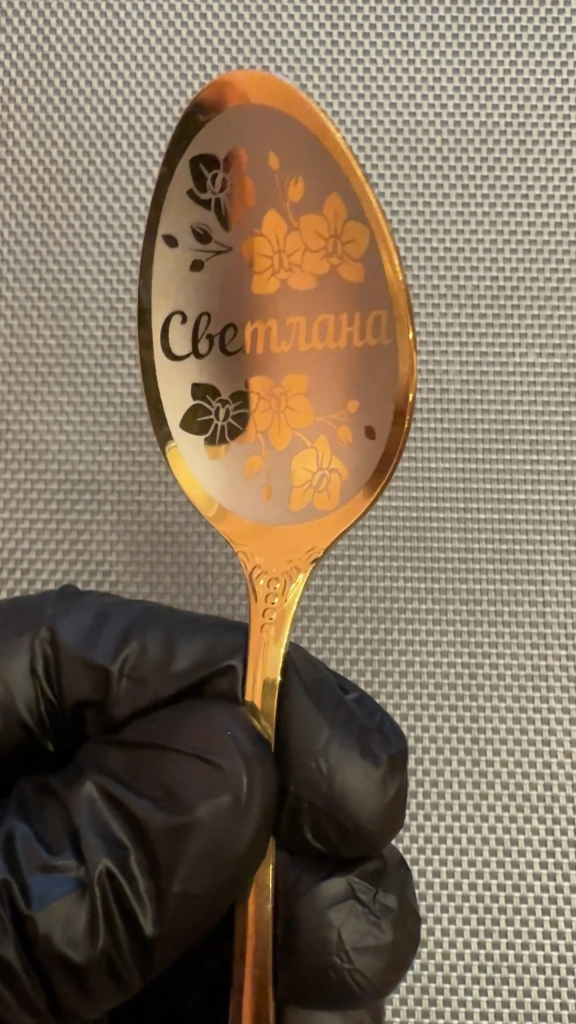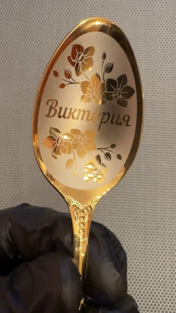 Сувенирная ложка “ВИКТОР” Нитрид-титановое покрытие.При использовании не меняет цвет.17см.