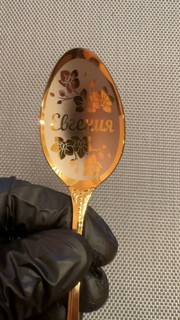 Сувенирная ложка “ЕВГЕНИЙ” Нитрид-титановое покрытие.При использовании не меняет цвет.17см.