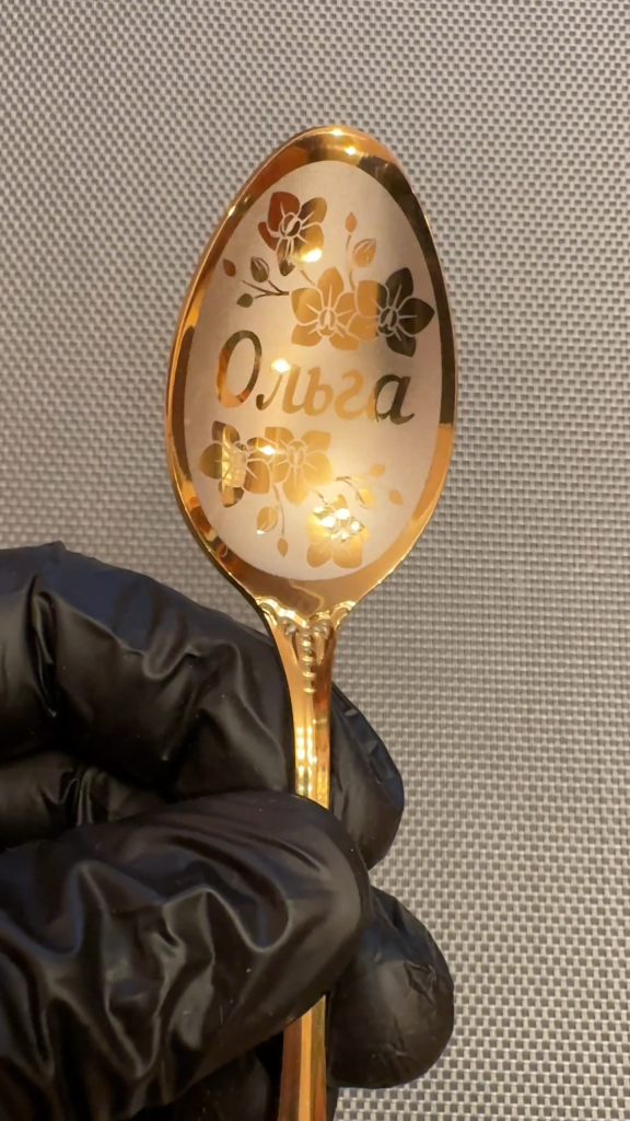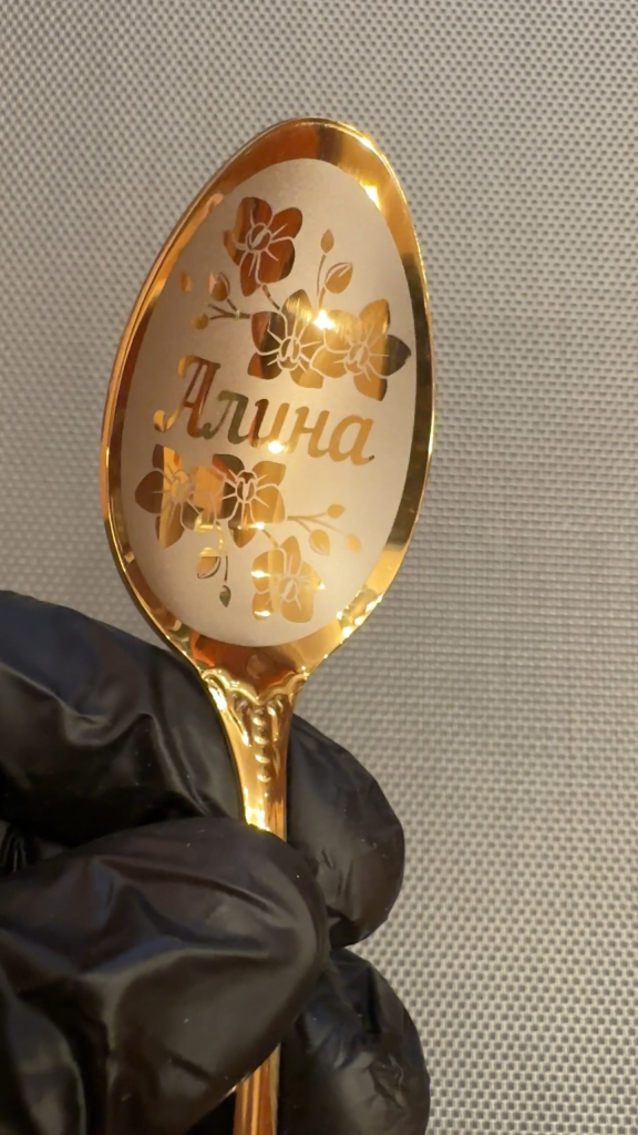 Сувенирная ложка “АРТЕМ” Нитрид-титановое покрытие.При использовании не меняет цвет.17см.