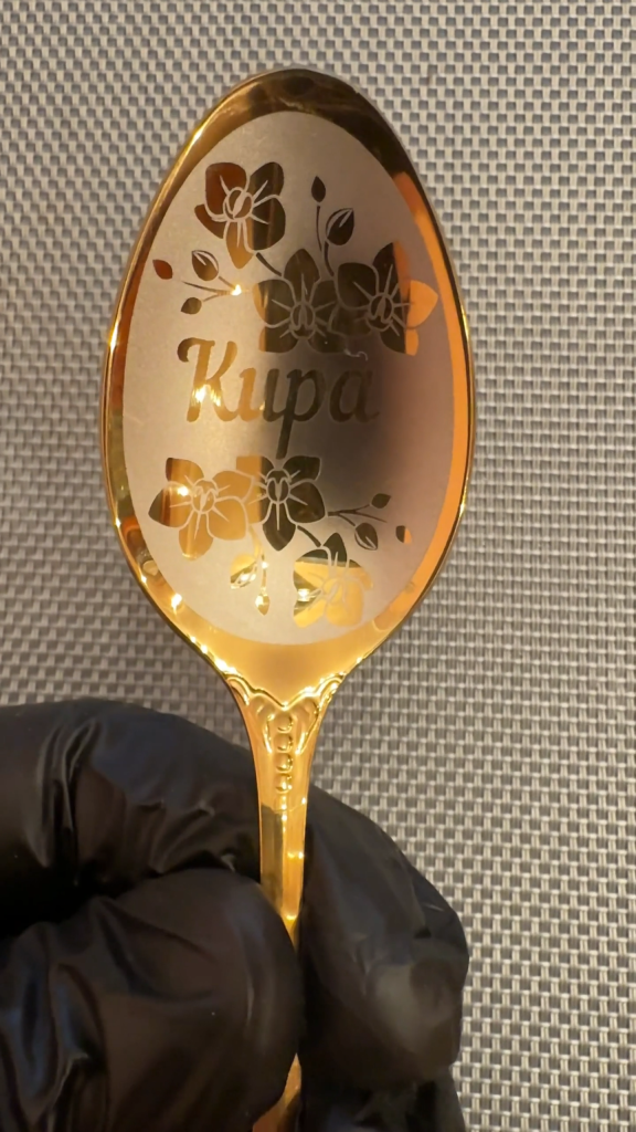 Сувенирная ложка “КИРИЛЛ” Нитрид-титановое покрытие.При использовании не меняет цвет.17см.