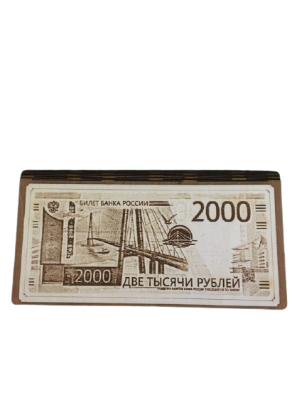 Деревянная купюрница”2000руб.”Размер:17.5*3*9см.
