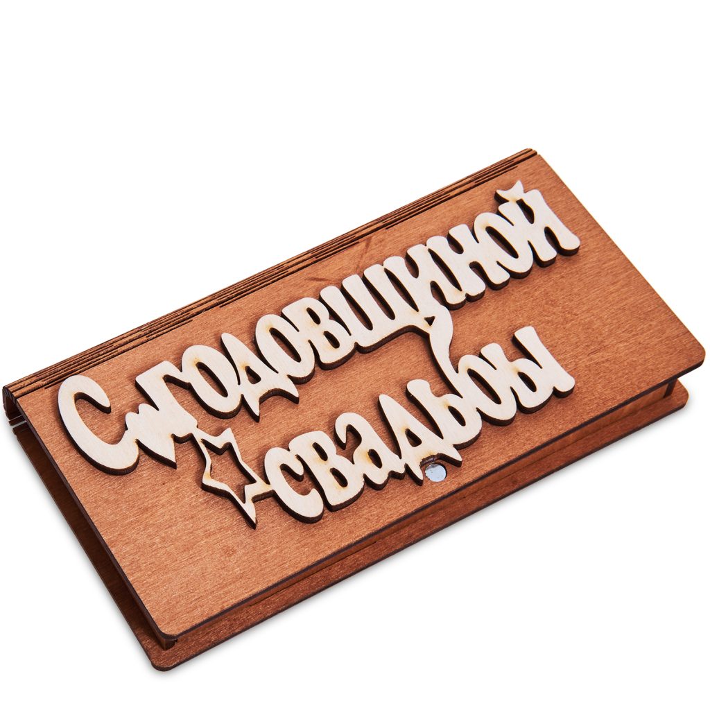 Деревянная купюрница резная”С годовщиной свадьбы”Размер:17.5*3*9см.