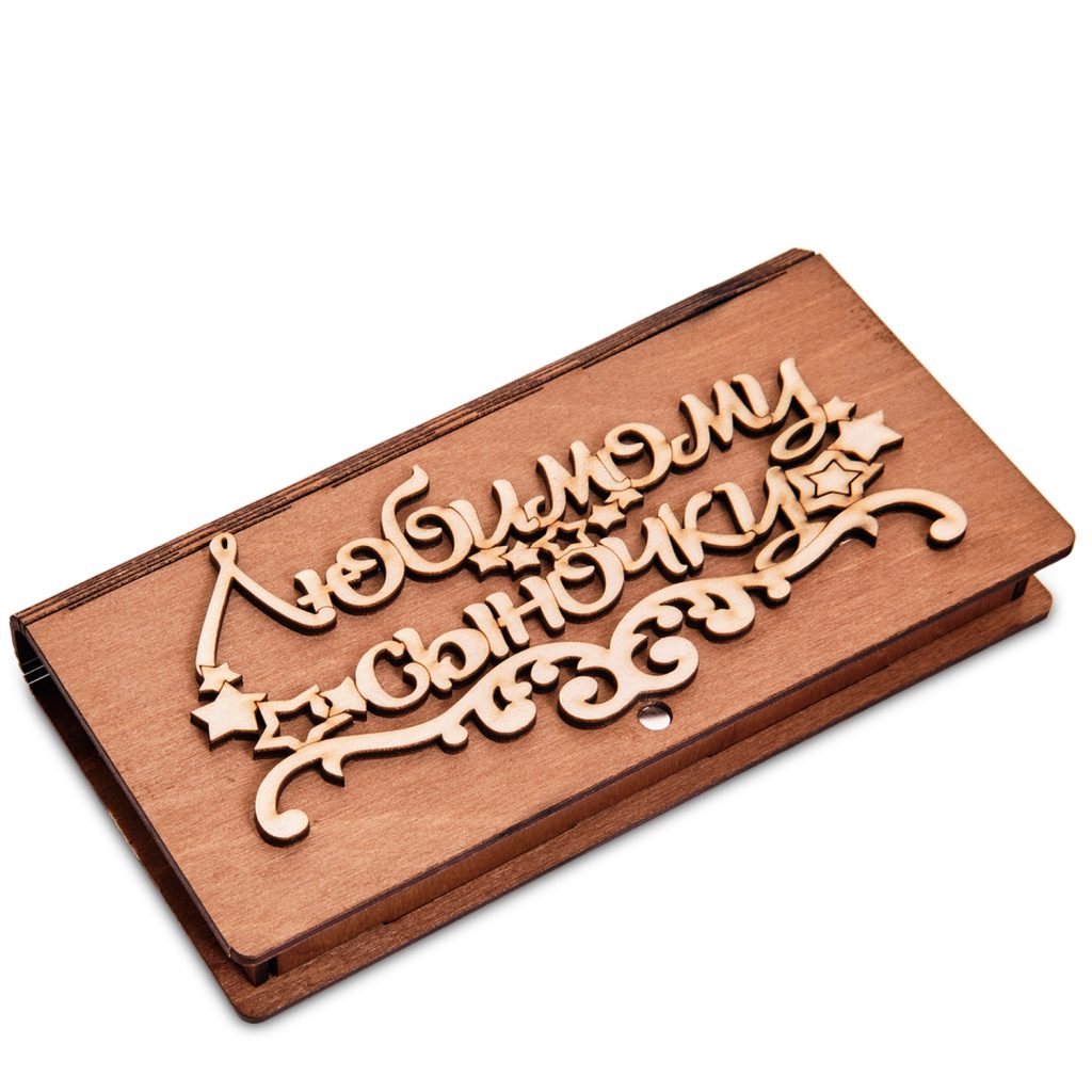 Деревянная купюрница резная”Любимому сыночку”Размер:17.5*3*9см.